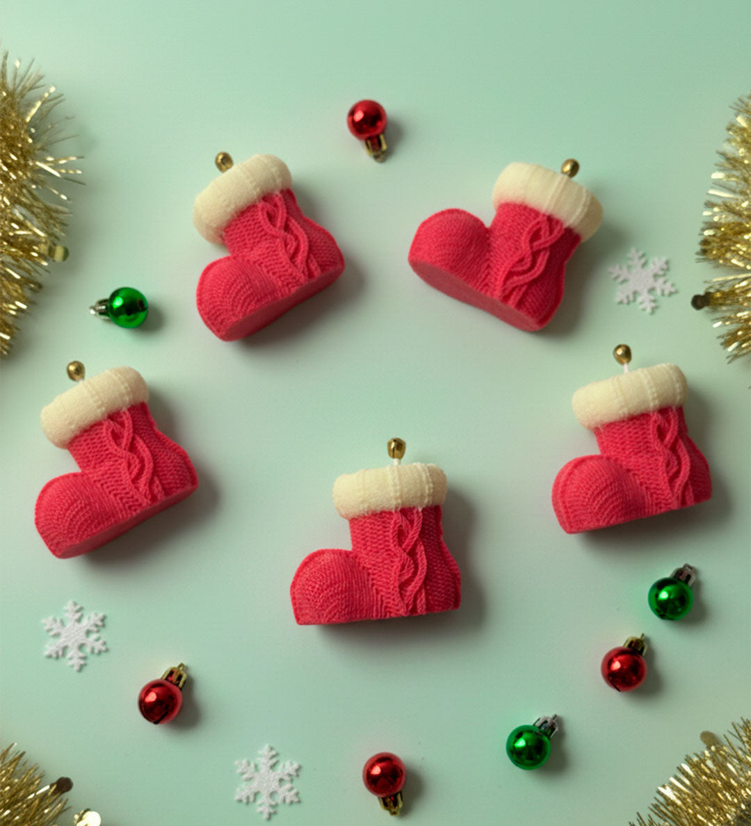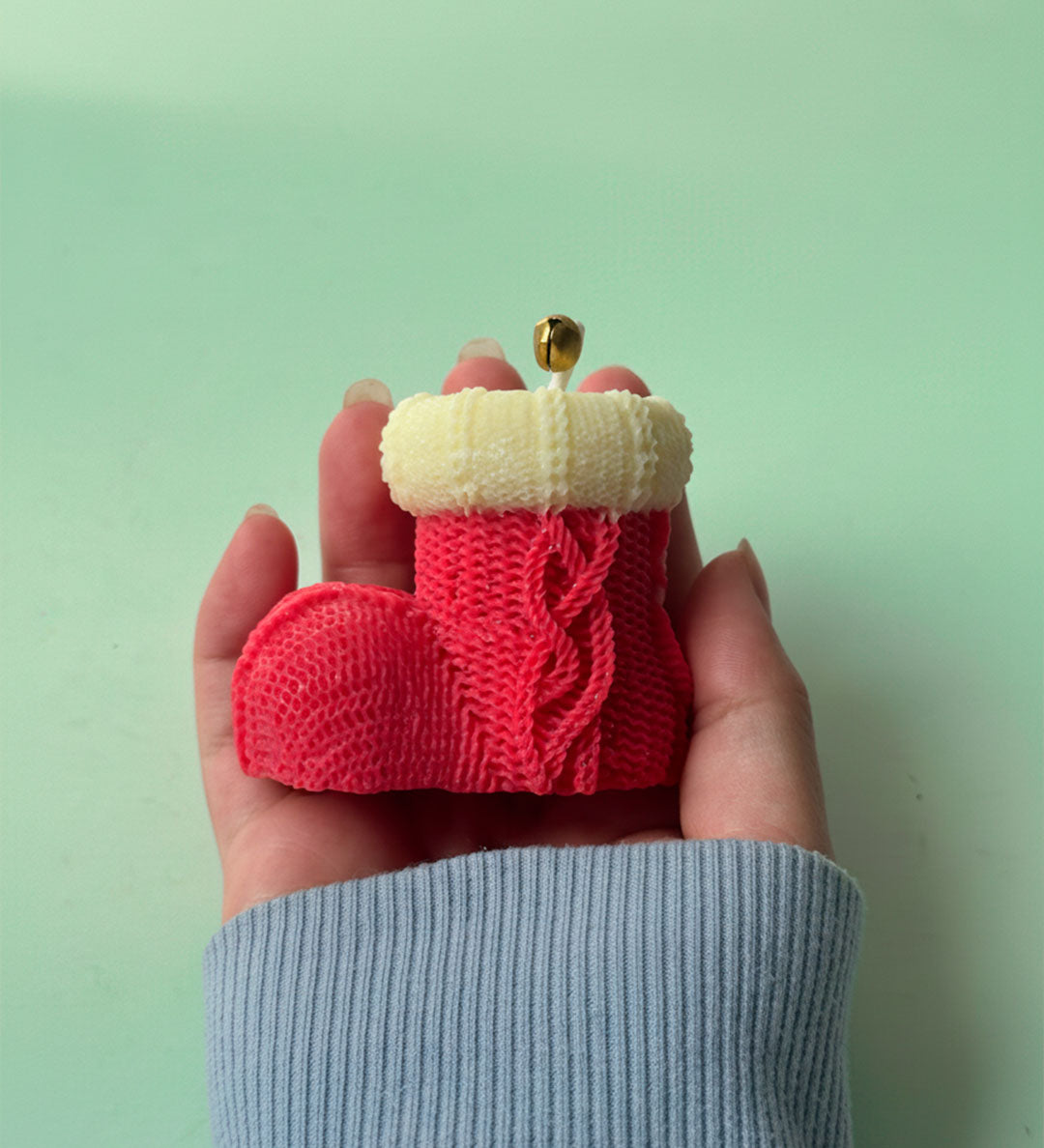 Celebra la magia de la Navidad con nuestra encantadora vela Bota Navideña, una pieza elaborada con cera de soja 100 % natural y una mecha de algodón puro que garantiza un quemado limpio y uniforme. Su diseño inspirado en una clásica bota navideña, con textura tipo tejido y una delicada campana dorada en la mecha, convierte esta vela en un detalle festivo lleno de encanto y calidez.