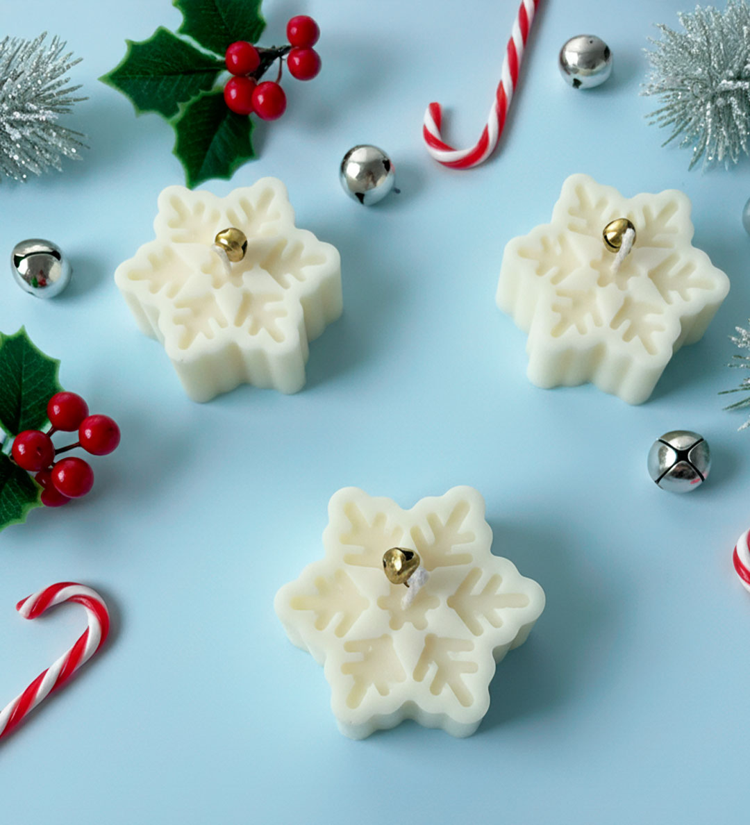 Siéntete como en invierno con nuestra vela Copo de Nieve, una pieza hecha con cera de soja 100 % natural y una mecha de algodón puro. Su delicado diseño en forma de copo de nieve captura la esencia de la temporada más mágica del año, llenando cada rincón de tu hogar con encanto y serenidad.